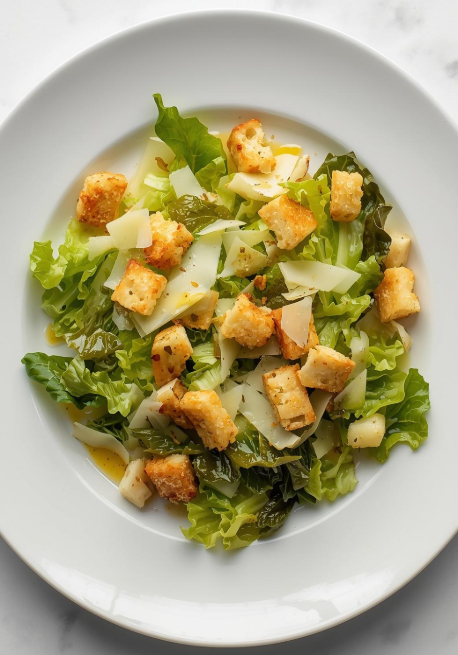 Romaine, croutons, shaved parmesan cheese with Cesar dressing